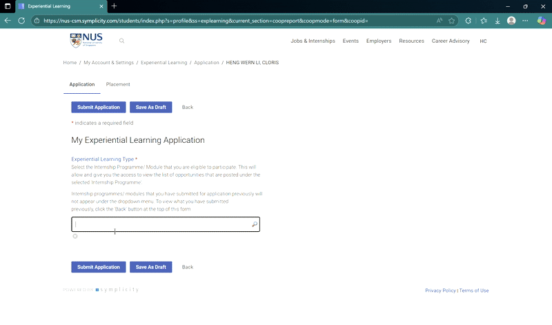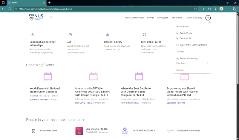 NUS TalentConnect: Complete the following 2 steps on NUS TalentConnect to view the internships posted by employers under the FASSIP work terms