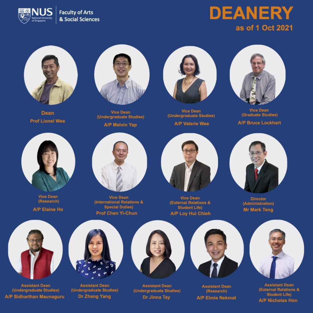 Dean of the Faculty of Arts and Social Sciences, Professor Lionel Wee, and other members of the Deanery take on their leadership roles today.