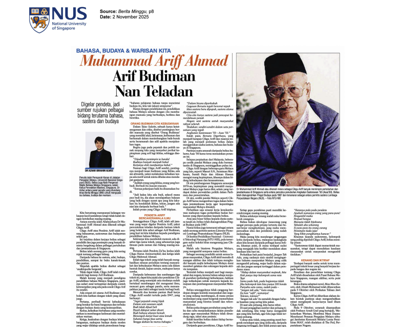 This story first appeared in Berita Minggu and on NUSNews on 2 November 2025.