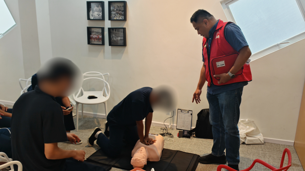 Later in the month on 22 December 2025, NUS Red Cross Youth (RCY) partnered with Singapore Red Cross and the Singapore Boys' Home to deliver a cardiopulmonary resuscitation (CPR) and automated external defibrillator (AED) certification course for 19 youths. Combining hands-on life-saving skills training with activities like Human Bingo and relay challenges, the programme fostered camaraderie between the youths and NUS student volunteers. Practical emergency response training and positive community engagement empowered youths and eased their integration into society.