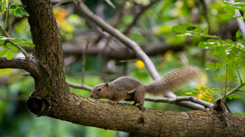 Unlike many perfectly-timed photographs that begin with a captivating sight, it was a familiar sound that made Mr Athanasius Koh, an Assistant Manager at NUS Giving, stop and take a closer look one morning in 2021. "A rustling in the trees piqued my interest," Mr Koh recalled, describing the scene just before he snapped the spontaneous shot of a plantain squirrel scurrying across a tree branch.