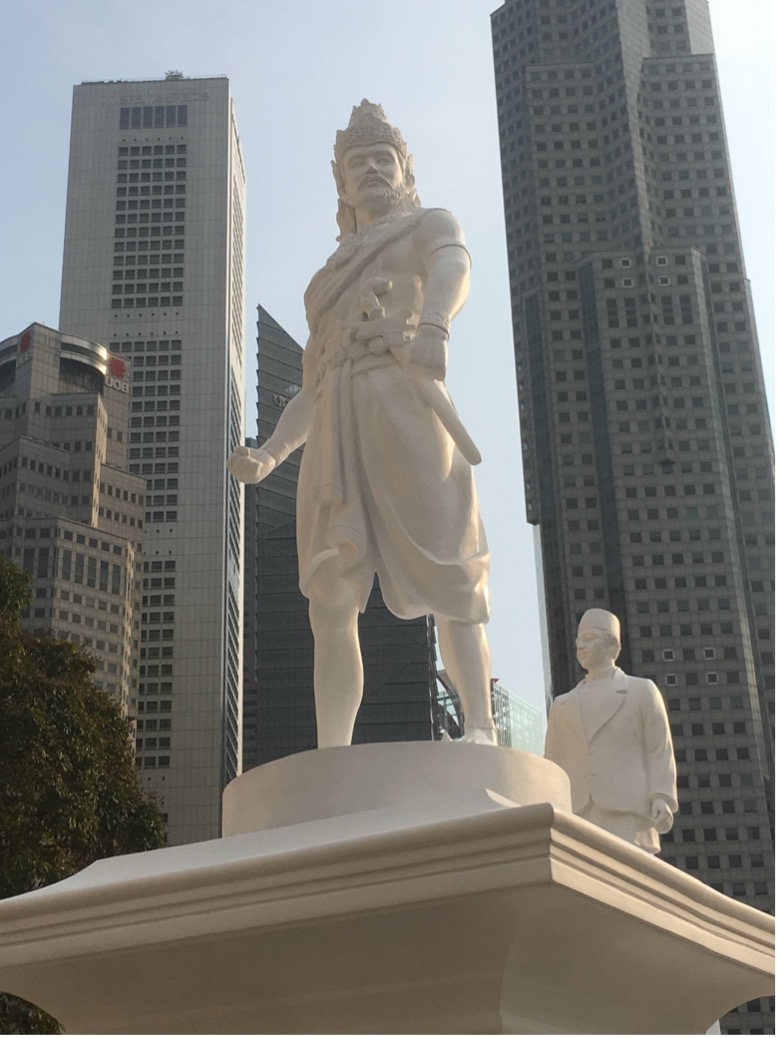 Photo: Statue of Sang Nila Utama at the Raffles Landing Site (front view) by Altopian1, CC BY-SA 4.0, via Wikimedia Commons