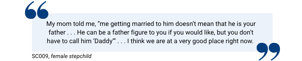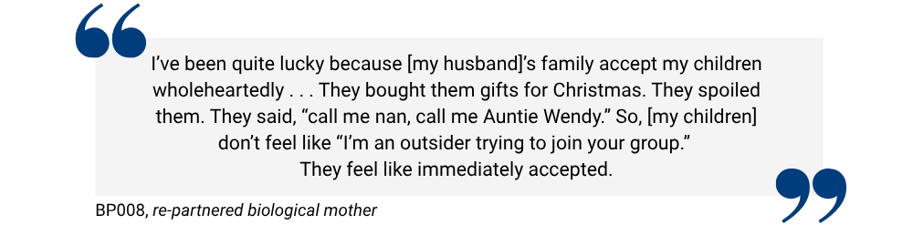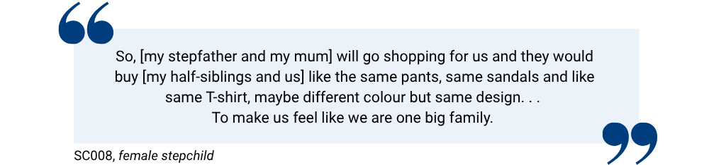 Participants also shared how inclusive gestures from the step-couple helped in the stepchildren’s adjustment. One child said: